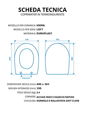 Copriwater per HIDRA LOFT TERRA/SOSPESO come ORIGINALE TERMOINDURENTE BIANCO cerniera inox normale o rallentata soft close