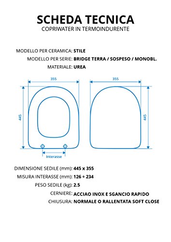 Copriwater per STILE BRIDGE TERRA/SOSPESO/MONOBLOCCO TERMOINDURENTE BIANCO cerniera inox normale o rallentata soft close