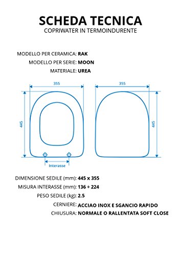 Copriwater per RAK MOON TERMOINDURENTE BIANCO cerniera inox normale o rallentata soft close