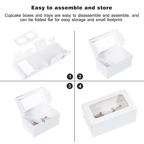 Coptiner Confezione da 50 Scatole per cupcake con finestra e inserti, Scatole per dolci Scatole per dolci a 2 fori Scatole per imballaggio in cartone per muffin, pasticcini, cupcake, torte, bianco