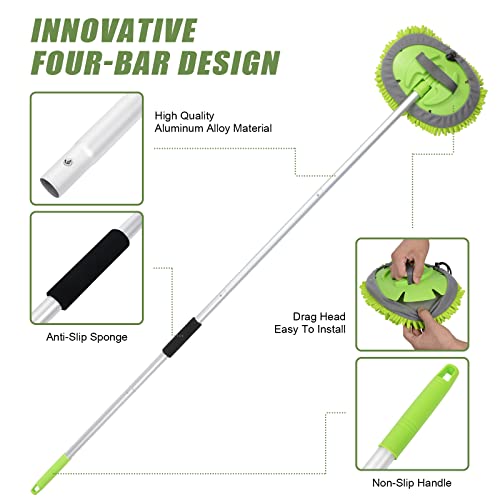 Mocio per lavaggio auto con manico super lungo: il mocio per lavaggio auto super lungo ti aiuterà a pulire le diverse altezze dove non puoi raggiungere a mano come il tetto dell'auto. La lunghezza regolabile può soddisfare le vostre diverse esigenze. L'asta in lega di alluminio è dura e leggera. Si può facilmente fare una pulizia completa.