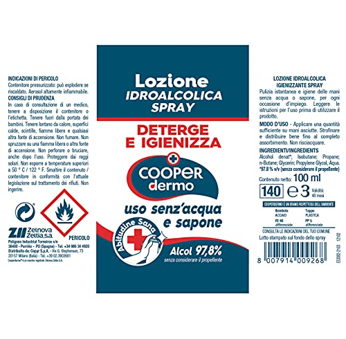 COPYR | Cooperdermo Spray Idralcolico igienizzante mani - Bombola - 100ml