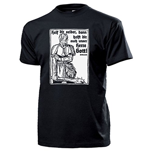Copytec Helf DIR selber, Poi helft DIR Anche Il Nostro Herre Dio_ Bauer Land Knecht Tedesco Soldato - T Shirt # 15734 Nero XXXXX-Large
