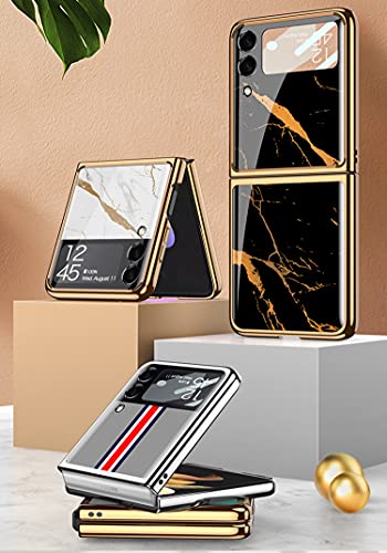 COQUE Custodia Galaxy Z Flip 3 5G,Custodia per Cellulare Verniciata Lucida in Vetro Ultra Sottile 9H,Cover Pieghevole per Samsung Galaxy Z Flip 3 5G-Amore-Nero