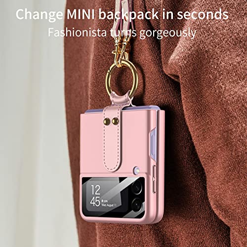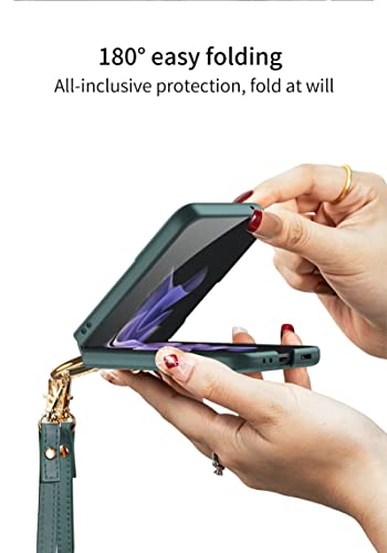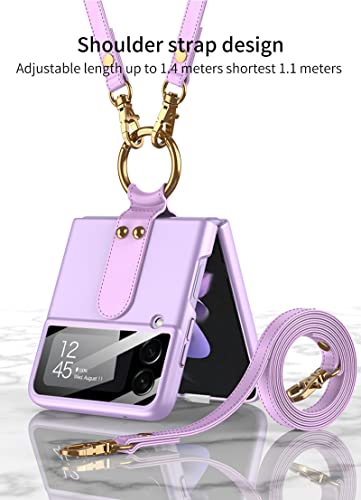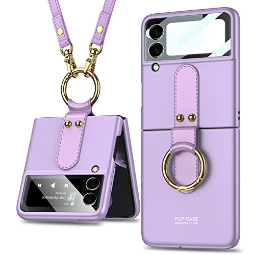 COQUE Custodia per Galaxy Z Flip 3 5G Cover, Pellicola Shell all-Inclusive Custodia per Telefono con Supporto Video ad Anello, Cover Pieghevole per Samsung Galaxy Z Flip 3 5G(con Tracolla)-Viola