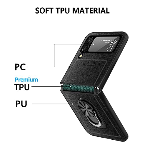 COQUE Custodia Galaxy Z Flip 3,Cover per Telefono incernierata all-Inclusive Sottile con Cavalletto Girevole ad Anello,Cover per Telefono Pieghevole per Samsung Galaxy Z Flip 3 5G-Verde