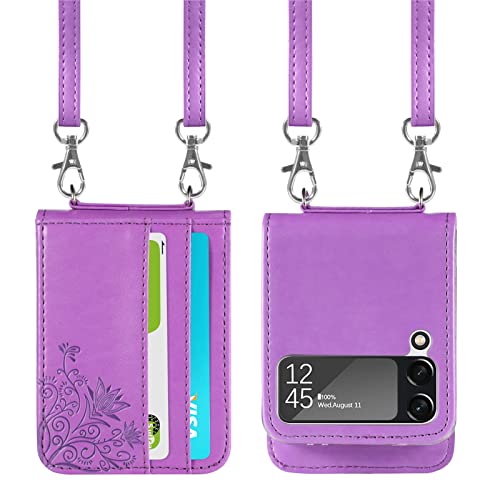 COQUE Custodia Galaxy Z Flip 3 5G, Multi-Slot Sottile con Custodia Protettiva a Corda Lunga a Tracolla, Cover Pieghevole per Telefono per Samsung Galaxy Z Flip 3 5G-Viola