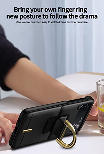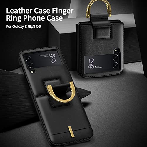 COQUE Custodia Galaxy Z Flip 3 5G, Custodia protettiva per tracolla fatta a mano con anello in metallo sottile, Cover pieghevole per telefono per Samsung Galaxy Z Flip 3 5G-Nero