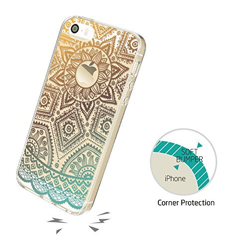 ESR Coque iPhone Coque iPhone 5 / 5S / SE Transparent avec Motif [absorbant Les Chocs] Hybrid Crystal Clear PC dur Couverture Arrière + Souple Bumper en TPU Totem Series (Gold Henna)