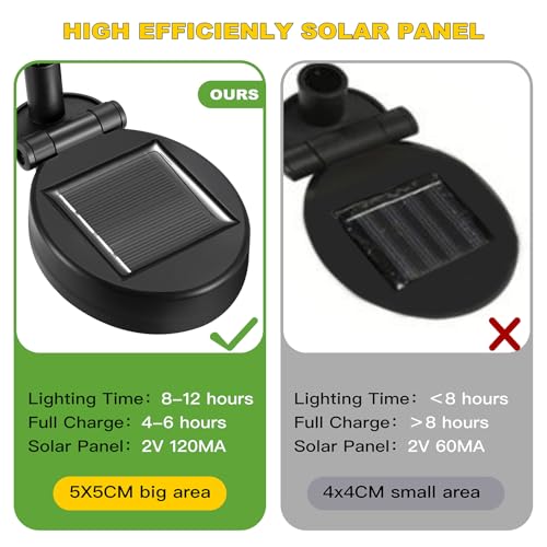 【Efficiente e di risparmio energetico】La luce solare da giardino è dotata di un pannello solare con un tasso di conversione del 21%, che si ricarica facilmente durante il giorno, mentre la lampadina ad alta efficienza energetica, classificata B, dura tutta la notte.