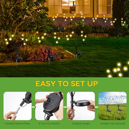 【Luci da giardino danzanti】Le Lampada di lucciola per lucciole sono progettate con rami morbidi e flessibili che ondeggiano e danzano nel vento, facendole assomigliare a un gruppo di lucciole che svolazzano nel vostro giardino. Perfetto per illuminare e decorare il tuo giardino o cortile.