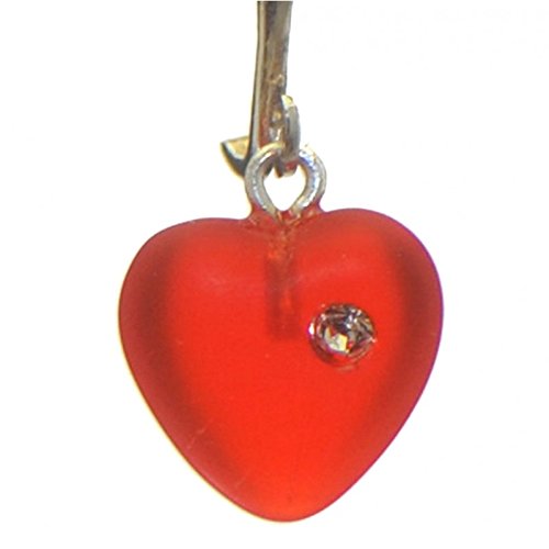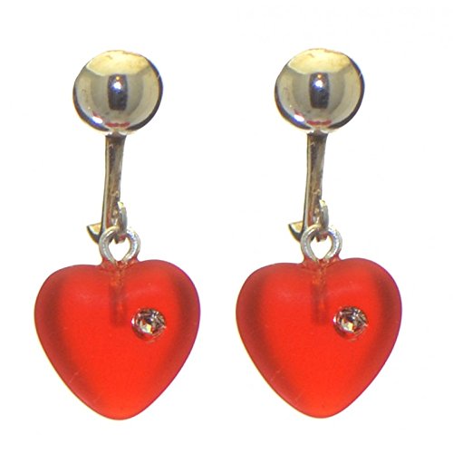 CORAZON cuore di vetro pressato rosso con inserto in cristallo clip su orecchini