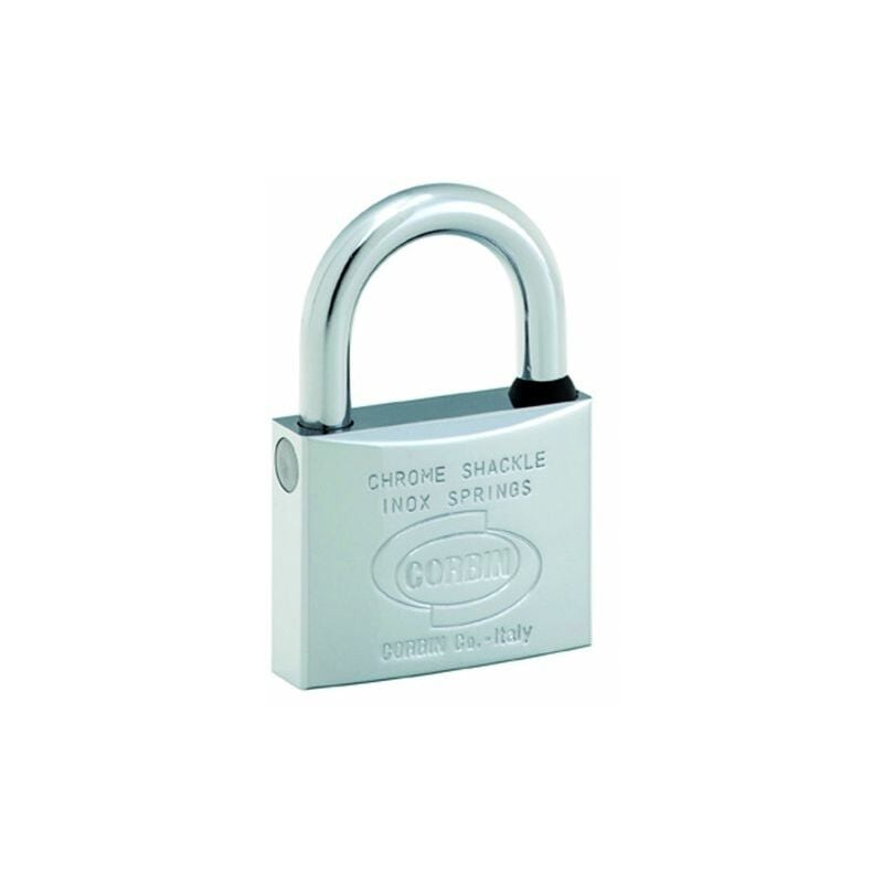 Lucchetto arco standard. Corpo in ottone massiccio, lucidato e cromato, a prova di corrosione, arco in ottone, 2 chiavi.