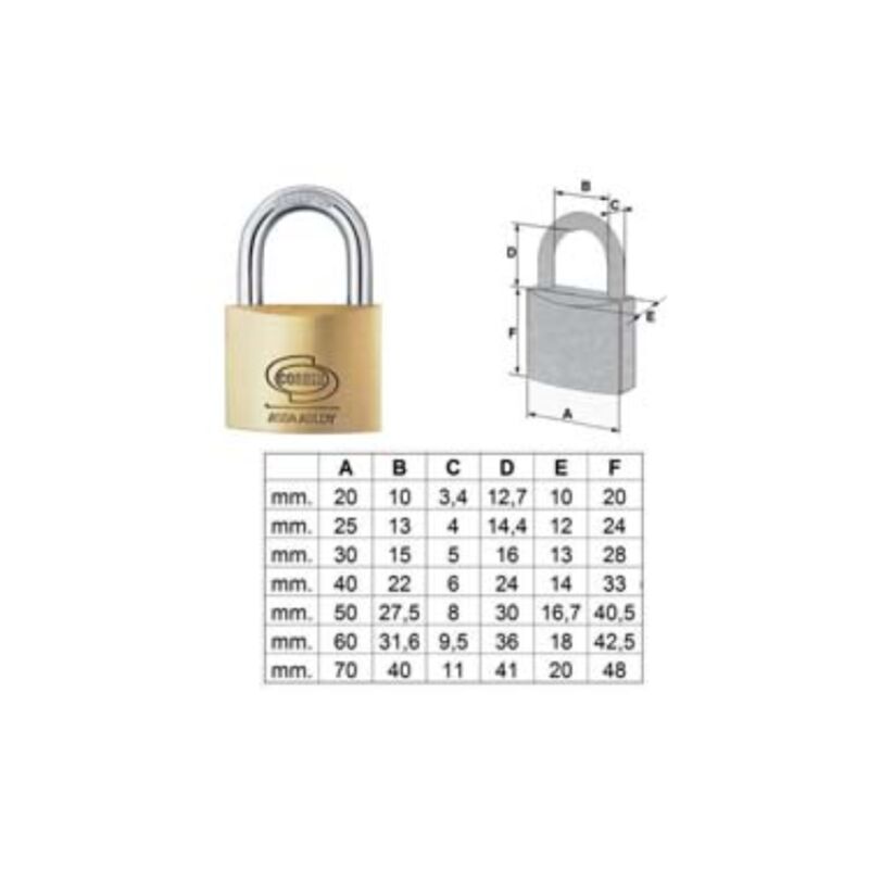 Mm.30 (pl1103000) corpo monoblocco in ottone satinato, arco in acciaio carbonitrurato, doppio scrocco da lucchetti > mm.30, spina antigrimaldello per lucchetti > mm.30, dotazione 2 chiavi Categoria merceologica: Lucchetti e accessori - Sicurezza - Lucchetti ad arco