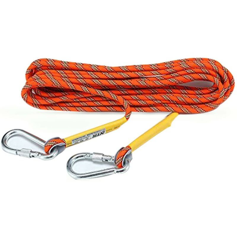 La sicurezza prima di tutto: realizzato in poliestere rinforzato con due ganci di chiusura alle estremità. Dettagli dell'attrezzatura per arrampicata in montagna: lunghezza a scelta: 10 m (32 piedi), 20 m (64 piedi), 30 m (98 piedi), 50 m (160 piedi) ), 100 M (328 piedi). Diametro: circa 8 mm. Nucleo interno: 13 core. Trazione (forza di trazione massima): 15KN. Limite di peso: 300 kg. Alta annodabilità: sufficientemente morbida e flessibile da consentire all'operatore di annodare facilmente i nodi. Portatile e conveniente: leggera e compatta, non occupa quasi spazio nella tua zaino e facile da trasportare. Corde da arrampicata per uso generico: adatte per sopravvivenza al fuoco, salvataggio, escursionismo, campeggio, discesa, protezione ingegneristica, cordino, accessori per alberi, speleologia e altre attività all'aperto. Caratteristiche: - La corda in poliestere rinforzato, resistente e di lunga durata. - Con i ganci di chiusura all'estremità, ti offre sicurezza e un ambiente