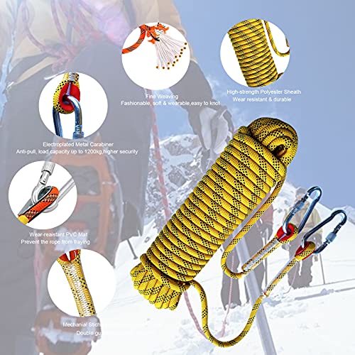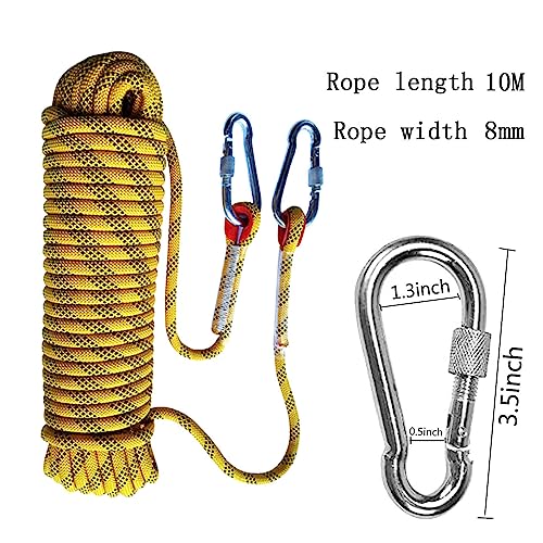 Corda da Arrampicata per Esterni, 2 moschettoni, Corda ad Alta Resistenza con Diametro di 8 mm, Corda di Sicurezza in Nylon Intrecciato Lunghezza 10 m, per attività all'Aria Aperta, Escursioni
