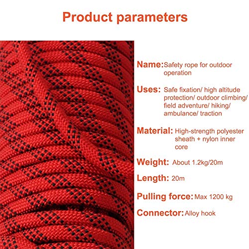 12mm Corda per Arrampicata Multifunzionale Corda in Nylon Corda di Sicurezza Corda statica antincendio d'emergenza Corda con 2 moschettone per Arrampicata all'aperto Campeggio Escursionismo