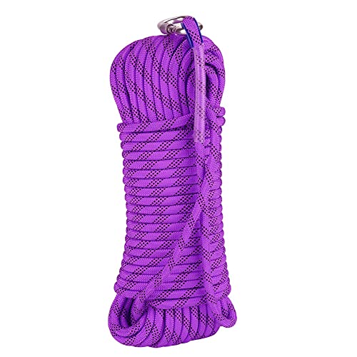 QHY Corda da Arrampicata 12mm Outdoor Climbing Corda con 2 Moschettone Climbing Equipment Fire Rescue Paracadute Corda Tenda da Costruzione Campo Corda (Color: Purple, Size: 20m*12mm)