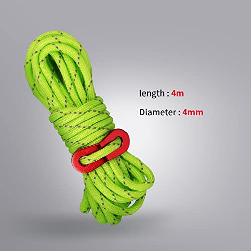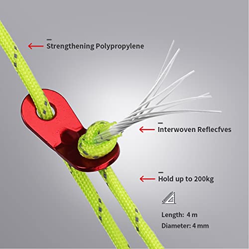 Corda da Campeggio,4 Pezzi Corda per Tenda Riflettente Tiranti Tende Corda,Per Tenda da Campeggio Escursionismo All'aperto (Verde Fluorescente)
