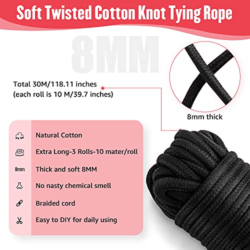 VI AI Corda in cotone morbido, 9,8 m, 10 m, 2 pezzi, multifunzione, naturale, resistente, lunga 8 mm, multiuso, corda in cotone spesso - 2 rossi (2 neri)