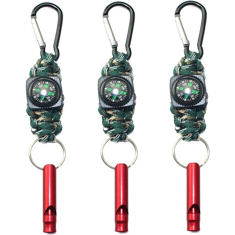 Strumenti di sopravvivenza all-in-one: il braccialetto contiene 3 tipi di strumenti come portachiavi, fischietto, cordino per paracadute. Con questi kit puoi sempre essere preparato per tutti i tipi di natura selvaggia e avventure all'aria aperta Functional Umbrella Rope: la Umbrella Rope fa parte di qualsiasi kit di sopravvivenza. Il cavo del paracadute è ideale per fissare reti o tende, legare insieme oggetti e riparare fili o cinture. Resistente, stabile e duraturo con i cavi del paracadute: il cavo leggero del paracadute è resistente agli strappi e agli agenti atmosferici . Con un fischietto di sopravvivenza aggiuntivo puoi anche chiedere aiuto in una situazione di emergenza. Attacco facile e veloce: il robusto moschettone con chiusura a molla consente di agganciare il mazzo di chiavi in modo semplice e sicuro a cintura, cintura o zaino. Un must per campeggiatori, backpackers e altri appassionati di attività all'aria aperta. Portachiavi elegante: il portachiavi di The è