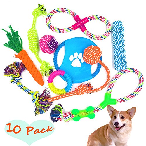 Cane corda giocattoli 10 pezzi resistente cotone intrecciato masticare giocattoli per Medium Small Doggie Puppy Cat pulizia dei denti