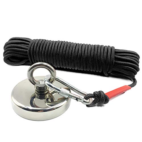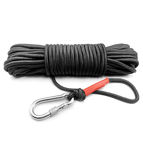 Corda Multifunzionale in Nylon da 20M con Ganci - Magnete da Pesca con Moschettone, Multiuso Corda, Corda per Outdoor, Sicurezza Durevole, per Attività All'aperto e in Campeggio (Diametro 8mm, Nero)