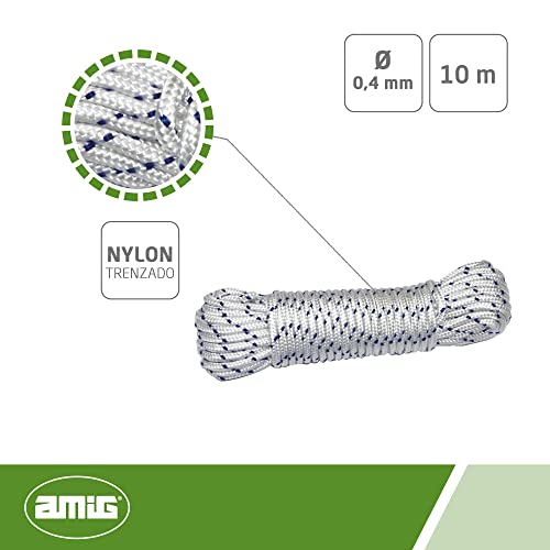 Amig - Corda in nylon intrecciata bianca e blu Mod.20190 | Cordino multiuso resistente e morbido, ideale per nautica o pesca, costruzione, sport e giochi, fai da te e ormeggi | Misure: Ø 4 mm x 10 m