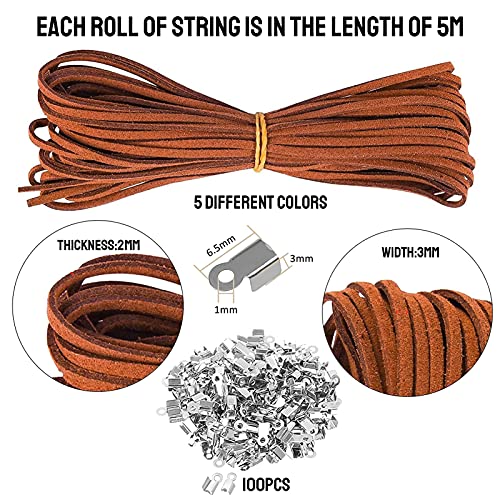 5PCS Corda in Pelle per Collana,5M*3MM Corda in Pelle Scamosciata,Cordoncino di Cuoio,Scamosciata Cordoncino di Cuoio Intrecciato,Corda Di Cuoio Di Filo Per Gioielli Artigianali Collana Braccialetto