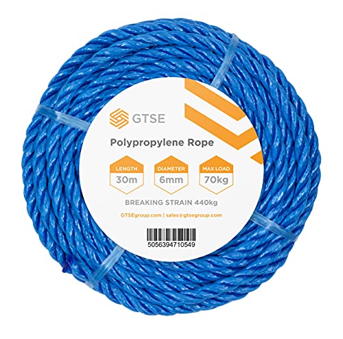 GTSE - Corda in polipropilene, 6 mm x 30 m, resistente, multiuso, perfetta per fai da te, giardinaggio e costruzione.
