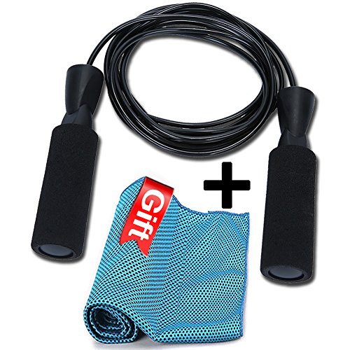Corda per saltare per bambini adulti, sostenibile e regolabile, cuscinetti a sfera in acciaio ergonomico, Rope Skipping per sollevamento pesi, boxe, palestra, allenamento fitness (Nero) vooa