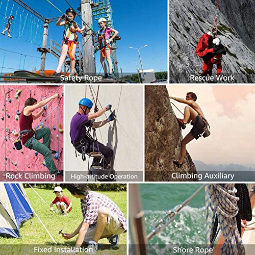 Corda Di Sicurezza All'Aperto Alta Resistenza Corda per Arrampicata Su Roccia Con Moschettone Corda Di Sicurezza Anticaduta 10Mm per Escursionismo Speleologia(Color:10mm,Size:98.4ft/30m)
