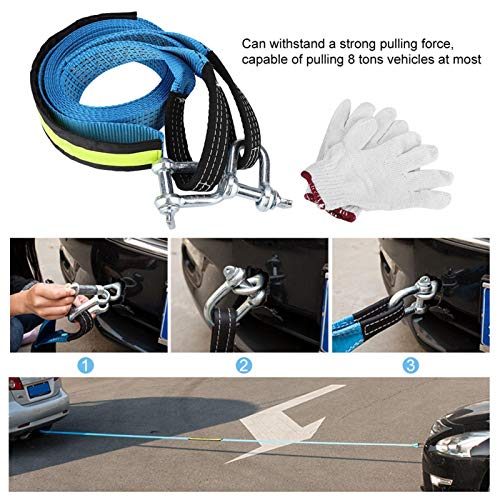 【PRESTAZIONI ECCELLENTI】 Questa fune di traino di soccorso per veicoli ha una forza uniforme, nessun disaccoppiamento, nessuna rottura, buona durata, sicurezza e affidabilità. Questa fune di traino di soccorso per veicoli può resistere a una forte forza di trazione e può tirare fino a 8 tonnellate di veicoli.