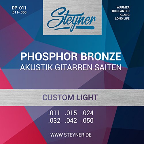 6 Corde per chitarra acustica steyner Custom Light | classico Phosphor Bronzo Corde Per Chitarra Acustica con calda, brillanti suono | Corde per chitarra acustica con suono di alta qualità e lunga durata Ton | Durata grazie al rivestimento anti corrosione, gold