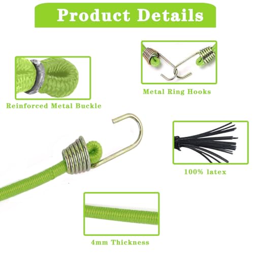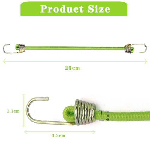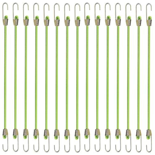 15 Pzi Corde Elastiche con Gancio Metallici 25cm Verde Cavi Elastica Cinghia Resistente Corde Elastiche Robuste in Gomma Cavi Elastici di Fissaggio Ganci Cordino Elastico per Portabagagli,Campeggio