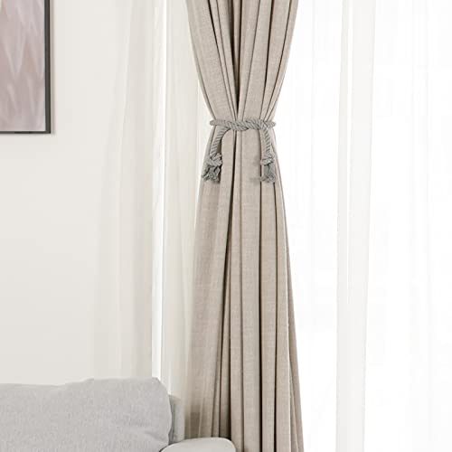 2 corde fermatenda in cotone naturale, lavorate a maglia a mano, con nappe in stile rustico Grigio