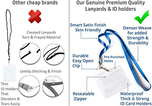Cordini per badge Holders Bulk all' ingrosso da collo con plastica porta impermeabile riutilizzabile cordini per badge Holders Bulk all' ingrosso da collo con plastica ID titolari verticale 10 blu, impermeabile e riutilizzabile Horizontal 25 Pack