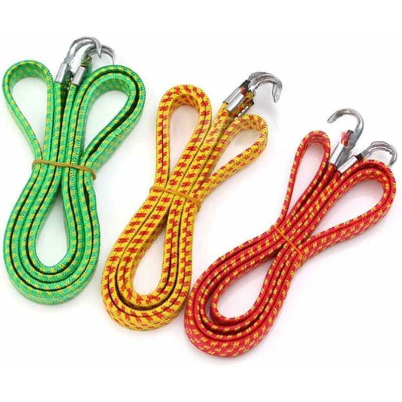 UTILIZZO MULTIFUNZIONALE - Uno strumento essenziale per fissare carichi e carichi su auto, camion, rimorchi, camper e motocicli, è anche una scelta ideale per l'uso esterno per proteggere il campeggio, le tende, i teloni e le tende da sole. < p>【MATERIALE】Realizzato con ganci in gomma e acciaio con una treccia in polipropilene, il fermabagagli è particolarmente resistente. < p>【APPLICAZIONE】 Per fissare oggetti, molto adatto per il trasporto. Queste funi di tensione con gomma elastica e ganci offrono una conservazione e un trasporto sicuri. 【CONSIGLI PER LA SICUREZZA】 A causa della loro forte elasticità, è necessario lasciarli andare con molta attenzione, altrimenti salteranno fuori dalle tue mani in un attimo velocità incredibile. 【SPECIFICHE】 1,3 cm di larghezza * 130 cm di lunghezza, 3 mm di spessore, peso del carico 30 kg. Colore: casuale Fornitura: 3 * Tenditori con ganci