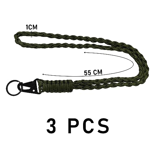 3 Cordini Intrecciati, Cordini Resistenti, Paracord Intrecciato, Cordini Intrecciati Per Cinghie Da Collo, Per Portachiavi E Attività All'Aperto (Nero, Verde Militare, Mimetico)