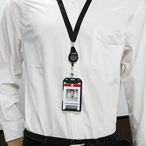 Cordini retrattili con porta badge verticale in plastica - Cordini retrattili per etichette con nome (2 pezzi, nero)