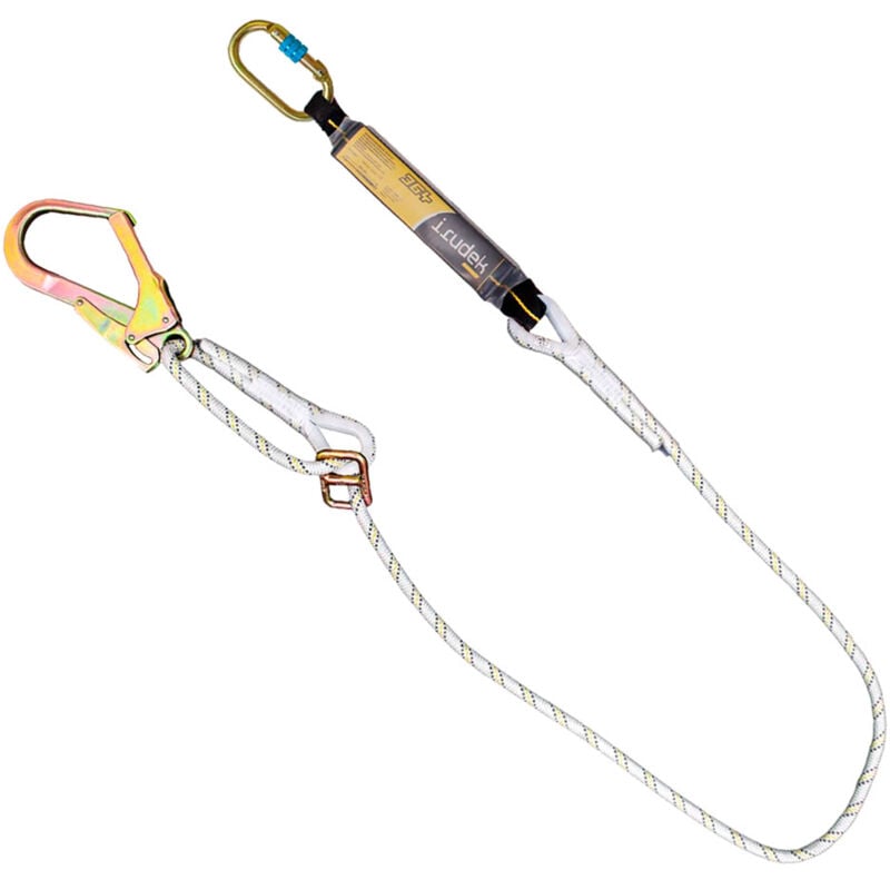 Cordino con dissipatore di energia lunghezza mt. 2 Con un gancio ad apertura 50 mm ed un moschettone. Corda semistatica in poliammide Ø 12 mm. Terminale della corda cucito saldamente e ricoperto in polietilene, redance in PVC resistenti all'abrasione. Resistenza statica 25 kN. Distanza massima di arresto 1 metro. Testato in conformità a norme EN 355, EN362. lunghezza mt. 2 Categoria dell'articolo: Segnaletica ed antinfortunistica - Sicurezza e protezione