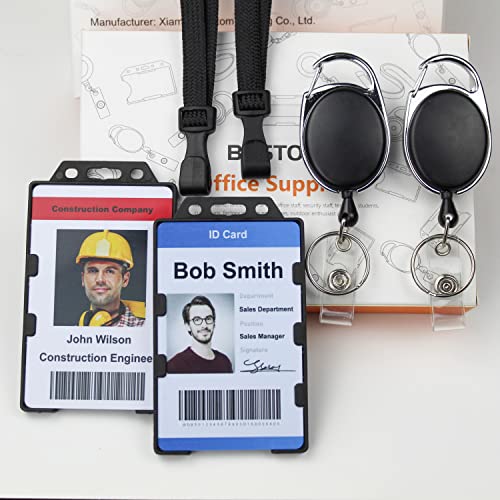 La speciale confezione tripla include 2 porta badge rigidi a doppia faccia, 2 cordini semplici, 2 clip retrattili yoyo che possono essere attaccate al cordino per renderlo estensibile o utilizzate separatamente per contenere un'identificazione aggiuntiva