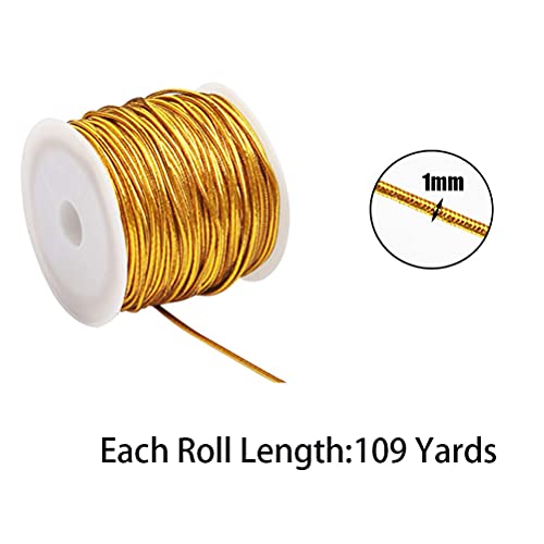 Cordoncini Metallici,2 PCS Corde Elastiche Nastro Ruban Cadeau Tinsel per Albero di Natale Braccialetti Artigianali Creazione di Gioielli 1mm 218 Yarde