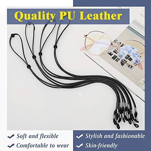 MoKo Cordoncino Occhiali, Reggi Occhiali 4 Pezzi in Pelle con Fermi Regolabili, Dim 38 cm, Accessori Occhiali Protezione Anti Cadute, Urti, Cinturino per Tenuta Occhiali Solari, Lettura, Nero