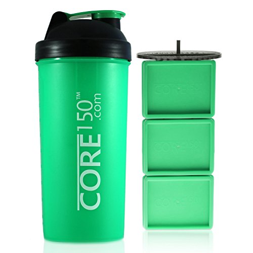 Core150? Green 35oz Best Protein Shaker Bottle with Easy Stack removable storage compartments