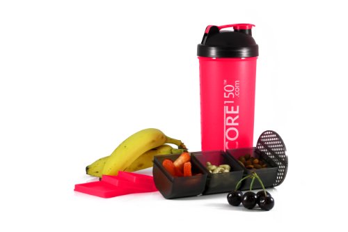 Core150? Red 35oz - Best Protein Shaker Bottle with Easy Stack removable storage compartments