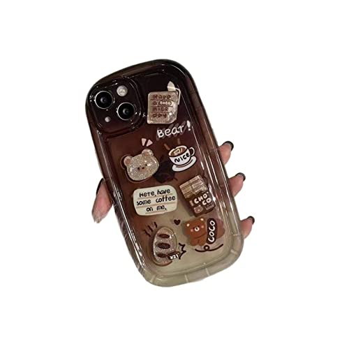 Coreano Trendy Bear Cartoon Gradient Phone Case per iPhone 14 13 12 11 PRO Max X XR XS Max Coffee Cover per iPhone 14 Plus (Color: 2, Size: for iPhone 14Plus)