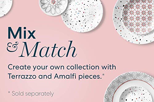 Il set da 18 pezzi comprende: 6 piatti piani da 26 cm, piatti da 17 cm per pane e burro, ciotole da 460 ml