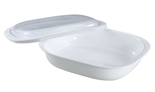 Corelle - Pirofila in Vetro Vitrelle Quadrato e Leggero Bake/Serve/Store, da 1,9 Litri, con Coperchio in plastica, Bianco
