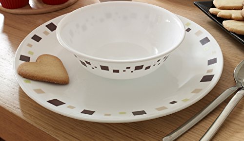 Corelle - Servizio da tavola da 12 Pezzi in Vetro Vitrelle, Motivo Geometrico, Resistente a sbeccature e Rotture, Marrone